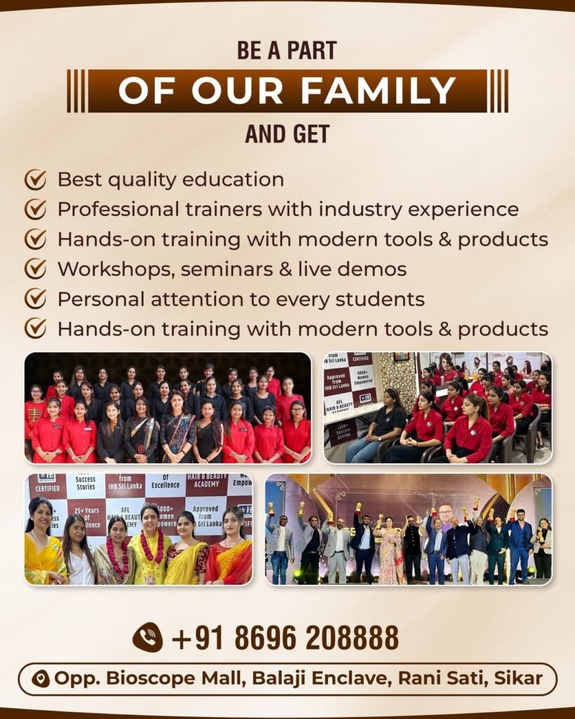 Thinking about building a career as a professional makeup artist or hairstylist? Whether you are a student, homemaker, or working professional eager to enhance your beauty skills, or someone passionate about nail art, hairstyling, or mehndi, the best makeup academy in Sikar –  Asha’s Fresh Look – is the perfect place to begin your journey!